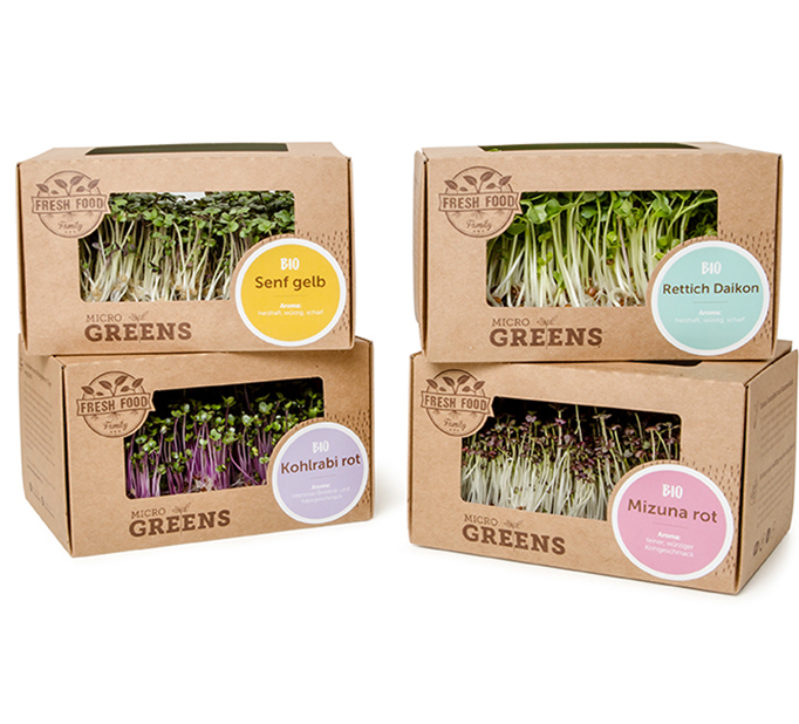 Microgreens sind junge Gemüsepflanzen, die du im Keimblattstadium erntest und verzehrst. Die jungen, zarten Kraftprotze bieten dir damit nicht nur puren Genuss, sondern auch einen zwischen 4- und 40mal höheren Nährstoffgehalt als ausgewachsene Gemüsepflanzen.